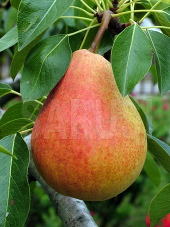 Fructe de marime mijlocie spre mare (180 - 220 gr.), scurt piriforma, cu pielita de culoare verde – galbui pe partea umbrita si rosu-caramiziu pe cea insorita, cu gust foarte bun